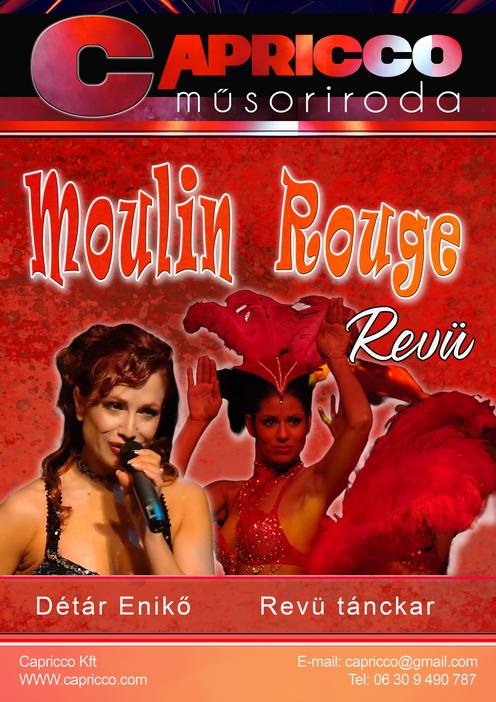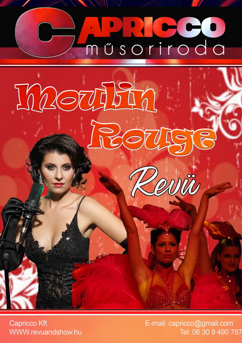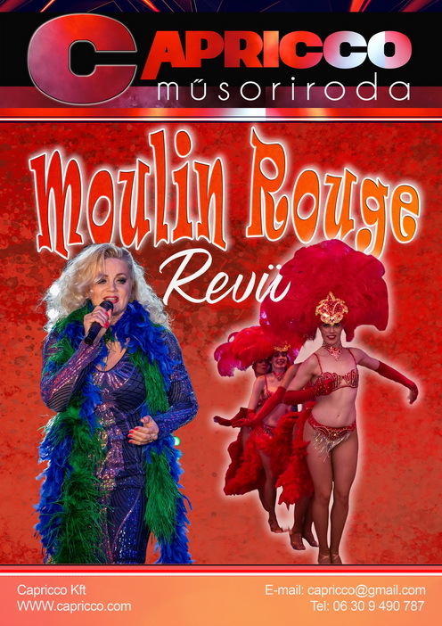 Farkas Gábor „Gábriel” és a „Moulin Rouge” revü táncakara közreműködésével fergeteges revüműsort adnak.